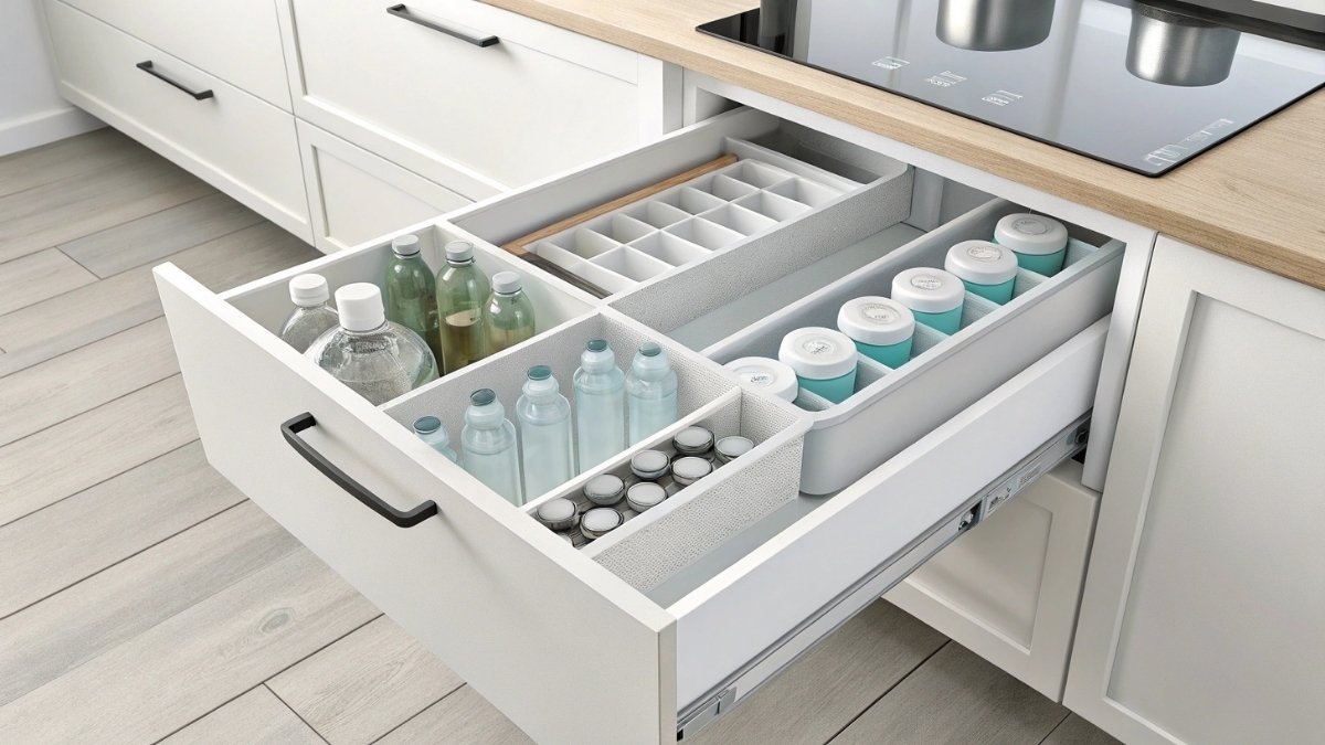 - DIY Tip: Color-code foam inserts to match your kitchen’s accent colors