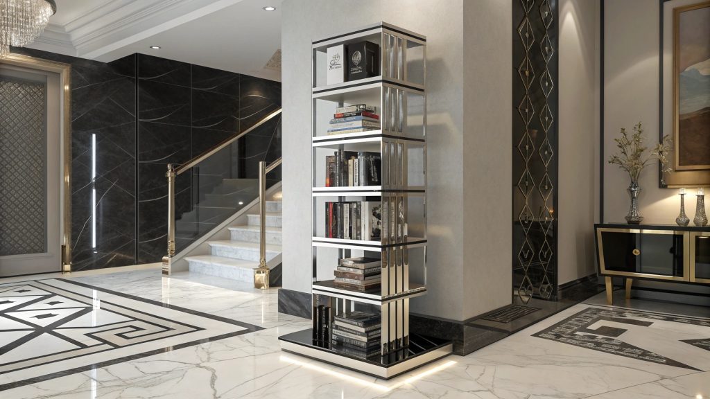 - Space Efficiency: Vertical design minimizes footprint while creating impressive storage capacity with architectural visual impact.