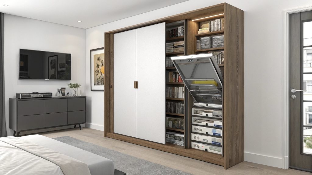 - Organization: Individual compartments can be sized for different media types, with optional interior lighting activated by motion sensors.