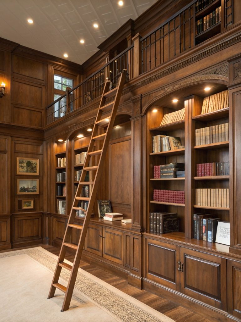 Bring the grandeur of old libraries into your home with a rolling ladder system that provides access to high storage while adding architectural drama. This solution maximizes vertical space while creating a stunning focal point that guests will remember.