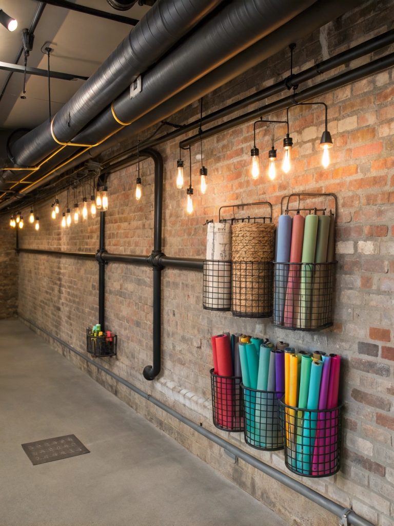 Embrace the industrial chic aesthetic with this exposed pipe storage system that turns your wrapping supplies into a design feature. This isn’t just storage – it’s functional art that celebrates the beauty of organization while providing unparalleled accessibility to your materials.