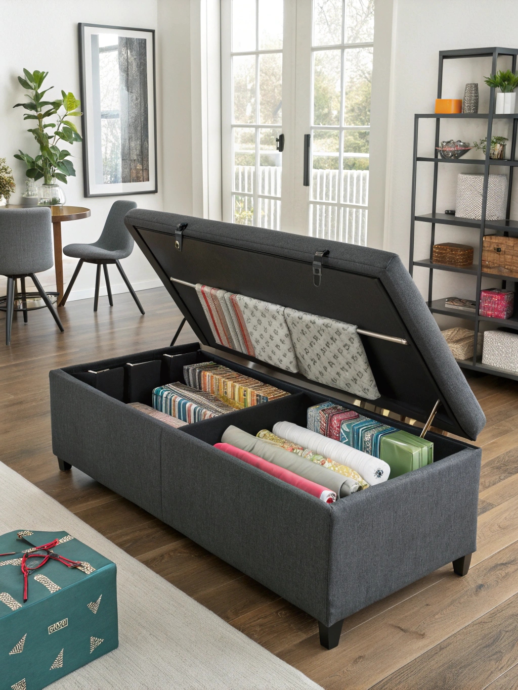 Transform your living space with this game-changing dual-purpose furniture piece that conceals an entire gift-wrapping arsenal beneath a luxurious seating surface. This isn’t your grandmother’s storage ottoman – we’re talking about a sophisticated hydraulic system that smoothly reveals a cavernous interior specifically designed for wrapping paper rolls, complete with adjustable dividers and integrated lighting that automatically illuminates when opened.